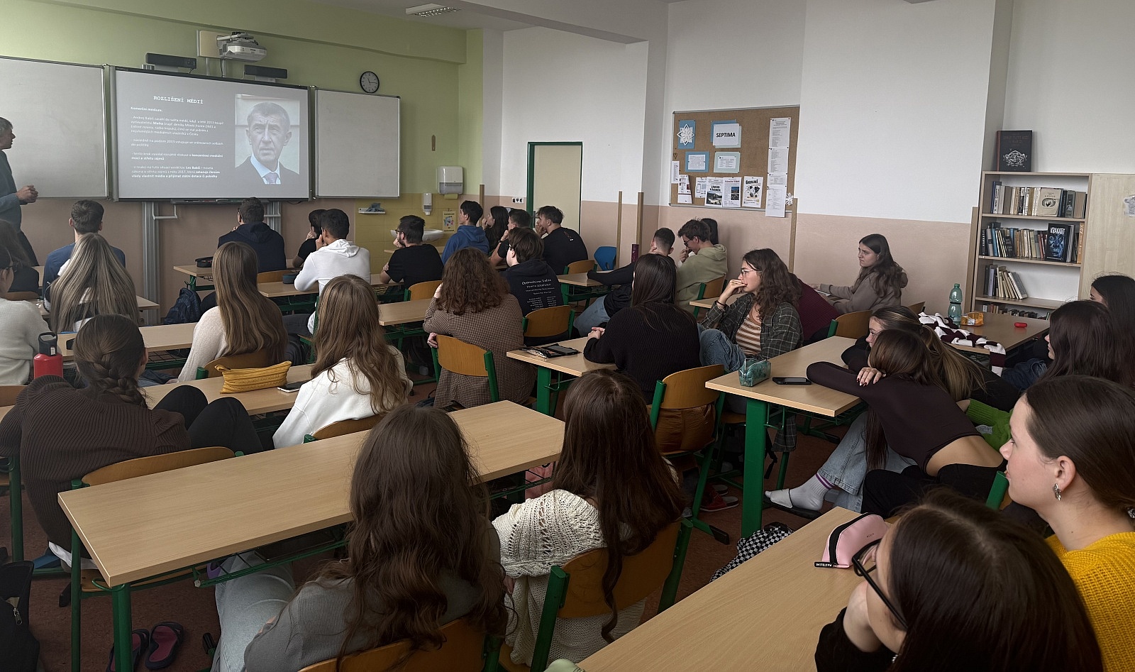 1 minuta ke čtení vloženo před 10 hodinamiVe středu 12. listopadu třídy sextu a 2. ročník navštívili se svým programem Pavel Pechoušek (publicista, spisovatel, bývalý novinář a tiskový mluvčí) a Marek Bílek (bývalý sportovní redaktor a krajský zpravodaj ČTK).